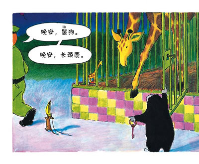 大猩猩于是就悄悄地跟在管理人的身后。管理员一一和小动物道晚安的情节孩子还是很喜欢的,重复的故事情节,加上有节凑的语言,孩子能沉浸在美好的睡前故事里该是多么美好的体验。动物园里,每个小动物的家仔细来看的话,也是很温馨的,每个小动物的家里都有自己喜爱的玩具。