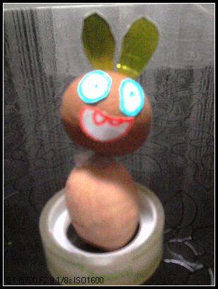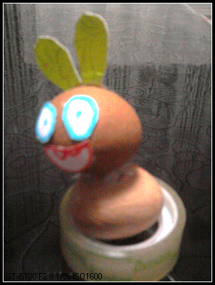 本来还打算往纸盒车子里面放小动物,不过宝宝画着画着,就转移了注意力了。画了几个圈圈涂上颜色,说是金桔、桂圆什么的。一会儿又把桂圆画成了兔子。我听着她桂圆兔子的想法,赶紧从抽屉里取出真的桂圆,一起做了只桂圆兔子,身体是碧梗果。兔子耳朵来源于纸盒车剪下来废弃的部分,绝对废物利用。