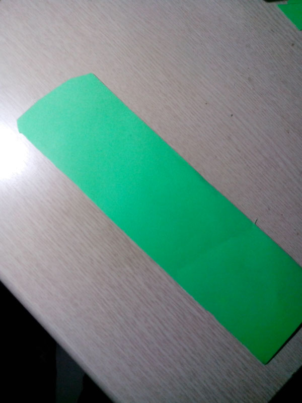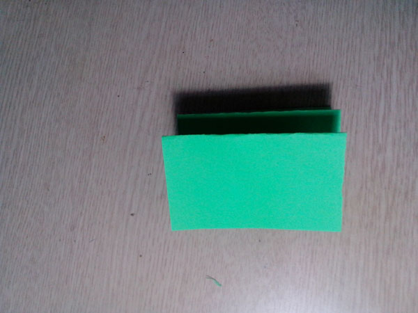 第二步:把长方形的纸按照一下正、一下反平均对折,折出一个小小的正方形。