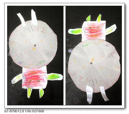4.细长的纸巾和她画的公交车结合在一起,是老鼠。