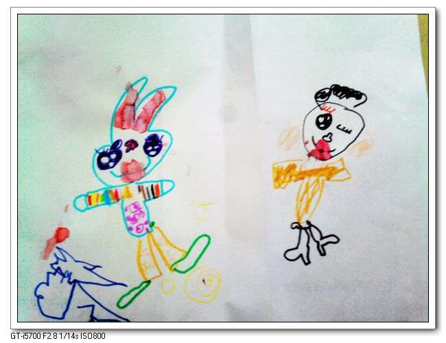 顺便附上婷画的画,兔子和妈妈,很喜欢婷画的红唇和给我画的高跟鞋。