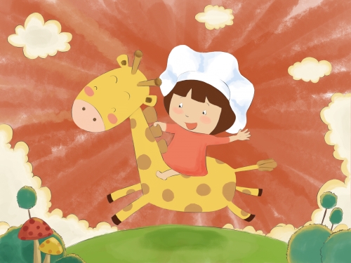 故事的内容不复杂,就是讲一个小女孩帮着妈妈做饼干并在制作的过程中的幻想,但就是这个简单有趣的故事我的孩子读完以后,总是缠着我再来一遍。孩子说他喜欢看悦悦和动物在一起,他希望自己像悦悦一样能和动物们做朋友,也能去天上,水里,山上去看看。