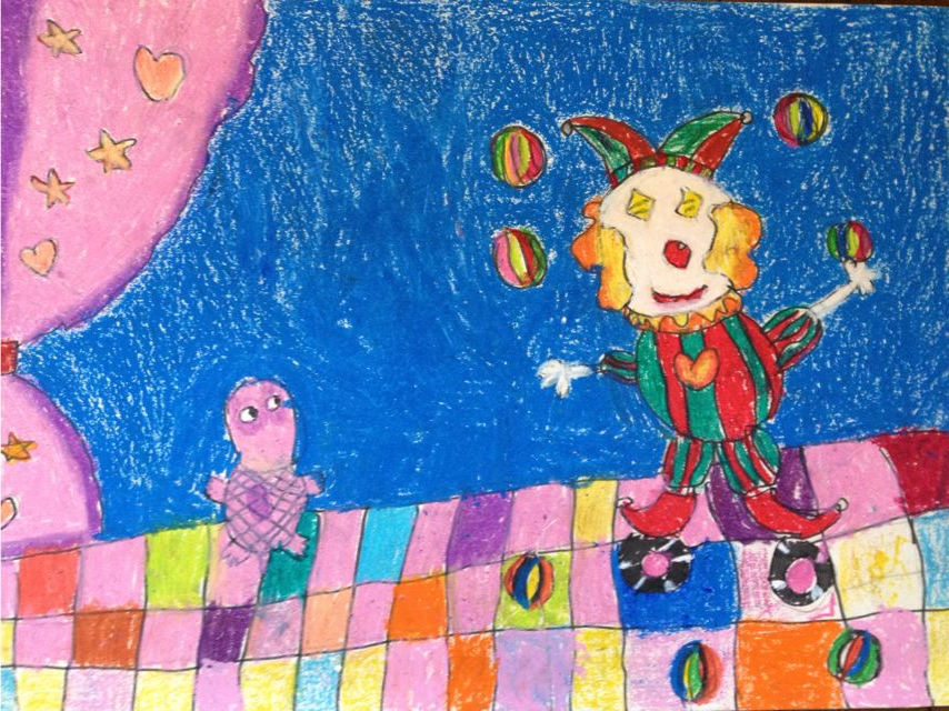 我挺喜欢这一张,乌龟虽然不对劲,但是一放这儿,可以看到一种特殊的童趣。画这样一张画,需要大半个下午,涂色涂的手指都痛。一开始孩子也是难以坚持,涂到一半,就像放弃。后来,我鼓励她,并把她的画挂在家里客厅,并且,每次有客人来的时候,就介绍给客人看。孩子受到了鼓励,就慢慢坚持下来。