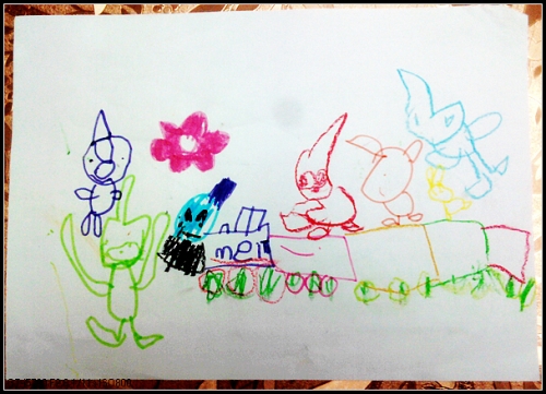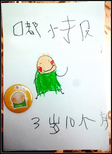 这幅画,画得很快,写“3岁10个月”也很快,就是“嘟小报”三个字很有点难,最后是在别的纸上写好了,剪下来贴上去的。