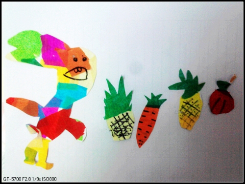 下面这张是我们昨天晚上玩的,彩色兔子(都是皱纹纸做的)。