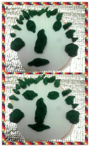 婷前天的橡皮泥作品发上来,嘴做得很像,鼻子有鼻梁、鼻翼和鼻孔,眼睛有眼眶和眼珠,上面是生气的表情(眼睛都立起来了,嘴角下撇),下面是开心的表情。