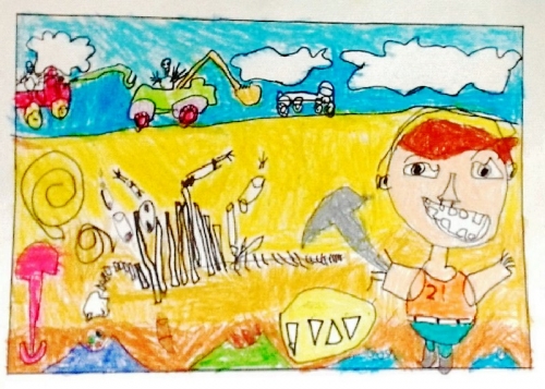 我最大的梦想,就是长大当一名出色的考古学家,专门挖掘恐龙的化石。你看这就是我长大后21岁的样子,帅吧。
