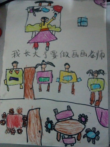 我猜想兴彤小朋友一定非常的喜欢画画,所以才想着长大也能当一名画画老师呢!