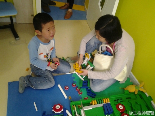 在建构区的一对快乐父女,爸爸也一起过六一啦!