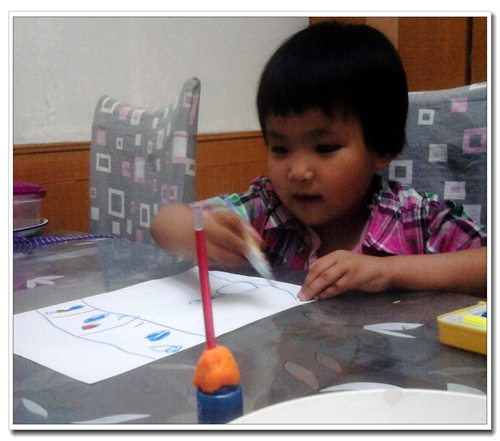 是在一本旧的《幼儿画报》上面看到的,婷一直要求做。其实很简单,但书上当时写的材料是小玻璃一只,还要在瓶盖上面钻孔,我一直在思考材料中。