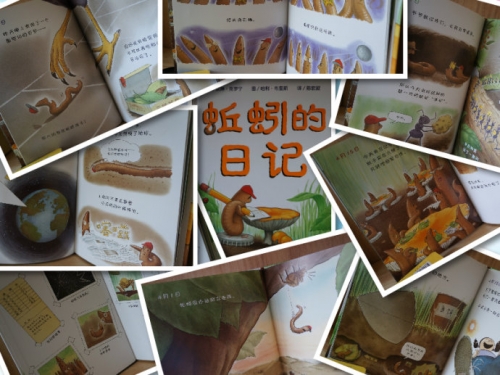 本次亚力克斯绘本故事馆征文大赛推荐的100种书目,我认真看了一遍,发现2岁6个月不到的儿子已经阅读了其中近30种(因为有些书是套装书,如果按册算的话应该有近50余册了),还有十余种左右的书已经买好,但因年龄不合适尚未给他阅读,例如《活了100万次的猫》。可以说这其中的每一本绘本都很经典,经典的绘本就是宝宝看过后无论过多久,他都可以不加思考地说出它们的名字,可以回忆出故事的情节;他也可以在不知道什么时候突然会说:妈妈,我想听xx。所以,给宝宝选书很重要,这可以说是妈妈必须要练就的一项本领。妈妈要根据宝宝的年龄、认知、语言发育、喜好等给宝宝挑选适合的绘本。例如宝宝1岁多的时候我给他看《打瞌睡的房子》《鳄鱼怕怕 牙医怕怕》等,叠加类故事或者语言简单且重复的故事比较受欢迎。再大点就可以选情节比较丰富的绘本。原版绘本中那本《my dad》是自宝宝开始英语启蒙后的大爱,持续喜欢了近2个月,我和宝爸爸至少读了50遍。因为之前博客里的一篇文章写过这本书,所以这次重点写另一本——《蚯蚓的日记》。