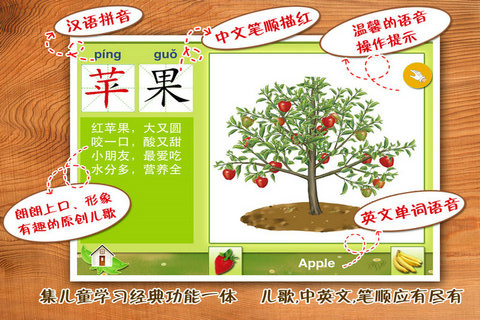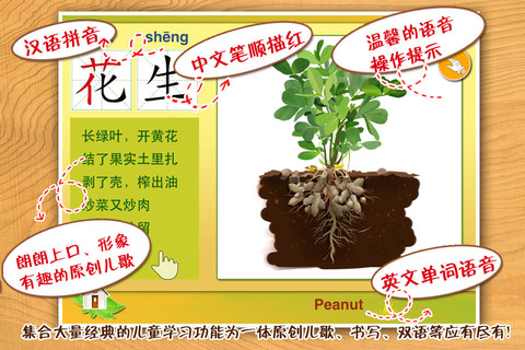 傲贝软件全球独家重磅推出首款互动式自然科学类启蒙百科,集合大量经典的儿童学习功能为一体,原创儿歌朗诵,笔顺练习,英文发音等应有尽有,配合语音提示和提示功能,让宝宝能够自主的完成植物的种植,从中学到相关的知识并开发智力!!