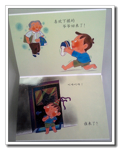 5.安全教育:看看门上的影子,为什么要这么画呢?告诉小宝宝他没有保护自己的能力,所以不能随便开门,首先要问问是谁,然后最好是由大人来打开。
