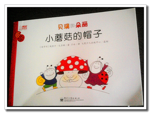 这个故事里小蘑菇的头上的帽子换来换去,最有趣的是一只平底锅也被当成了帽子,因为它是雪人的帽子。我打算有空了带孩子做个手工,我们小时候玩儿得那种翻页的书,下面不动,上面的帽子每页不同。