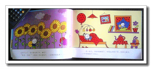 这本书里的故事虽然简单,但很细腻,比如小伙伴们帮助向日葵用露水清洗伤口,用草叶包扎,婷看得就非常认真。还有小伙伴们晚上轮流看守,也是提出了解决问题的具体办法。最重要的,也是目前我给婷买的书里没有见到的(应该是我买的书还是偏低幼的缘故),是他们不仅要解决问题,还要找到问题的根本原因,从源头上解决。比如,小仓鼠偷吃向日葵,没有说抓住小仓鼠就算了,而是要去跟小仓鼠谈谈,了解到原来小仓鼠是因为没有吃的,于是大家帮助它盖房子,找吃的。婷问我,妈妈,要是小仓鼠吃完了怎么办?我说,小朋友们会带着它一起劳动,比如种向日葵或其他的东西,通过劳动来换取食物。