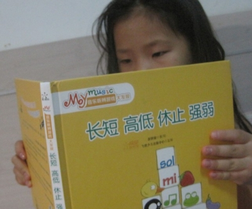 对于妞,音乐启蒙应该算从什么时候开始呢?肚子里,还是周岁里,还是四周岁呢?怀孕的时候,喜欢听音乐,没事都打开播放器,听听歌曲,有时候也跟肚子里的妞唱儿歌,老公最喜欢唱的是《大海》和《一生有你》;等妞生下来的时候,我也喜欢给她放歌听,我发现在调皮的时候,听了音乐就老实多了,尤其喜欢听爸爸唱的那两首歌,学的最早的两首歌不是什么儿歌而就是这两首歌,记得有一次好奇问妞是什么喜欢这两首歌的?妞居然说在妈妈的肚子里,孩子的话可信吗?在妞不到四周岁的时候,我给妞报了音乐启蒙的兴趣班,专业的认识了各个音符,比如全音符、四分音符,十六分音符...。可能受音乐启蒙和幼儿园老师的影响,妞自己选择了学习钢琴,从此加入了琴童大军。妞学习钢琴完全是出于自己的喜欢,妞对小小的音符也别有一番地喜欢。可是那时候没有非常有趣的书,妞就看枯燥地乐理书和钢琴的学习书。