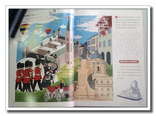 最后一页汇总了书里的一些名胜,可以让孩子试着指出分别出自哪个国家,同时这还是一道找不同的题,一共12处细节,还是有点难度啊。