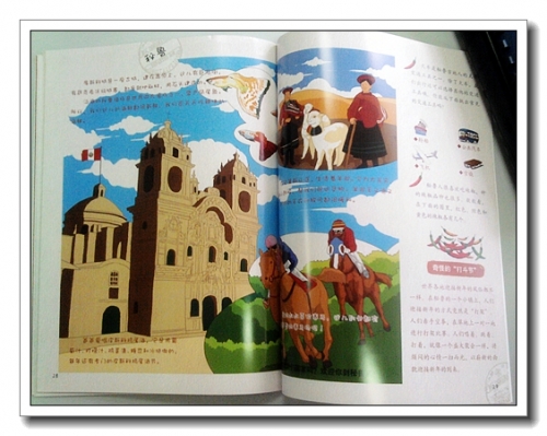 翻开正文,踏上旅途,注意看国家名称的旁边,还盖着一个“出境”印章。内容很详实,有介绍天气、城市、人物、特色动植物、节日、饮食、标志性建筑物、风俗习惯等等,还有这些国家的称号。右下角的小贴士有一些小知识,如修建在船上的博物馆、神奇的光影蛇形、贮水本领最强的树等,都是孩子们很感兴趣的东西。