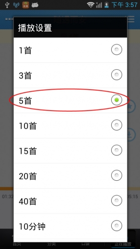 其次,点击<上一曲>左边的按钮,会弹出一个<播放设置对话框>,如下图可进行再放几首的设置