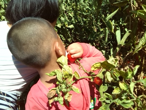 看看我家宝是怎么样摘西红柿的: