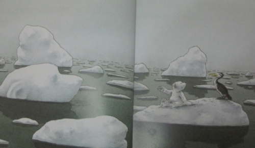 《小北极熊与鲸鱼朋友们》讲述的是小北极熊宝儿出生后,第一次享受到明媚的阳光,好奇的宝儿对万物充满了喜欢,她喜欢到处看看,在张望中,宝儿发现了一艘遇难的船。宝儿以为没有人在这只船上,谁知竟然看到了一个滑稽的鸟儿在晒太阳。他们很快交谈起来,鸬鹚并邀请宝儿和它一起去找白鲸,一起去捕鱼。当很多白鲸出现的时候,宝儿还确实有点害怕。白鲸是友好的,宝儿能感受到,很快他们就一起嬉戏了。当他们玩得正开心的时候,来了一艘捕鲸的大船。急中生智,宝儿有好办法,想到了一个离得不远,大船又进不去的港湾,白鲸们一起藏在哪里,让大船上的人看不到冰面下的白鲸们。徒劳无获的捕鲸人们空手而归,是聪明的宝儿就了大家。当大家都在兴奋度过危险时期的时候,发现冰块,雪块堵住了海湾出口,所以鲸鱼们都出不去了。聪明的宝儿又想出来了一个好办法,宝儿找来爸妈,人多力量大呢,一起造了一个帆布船,白鲸们沿着帆布挪动。所以的鲸鱼都出来了,宝儿又一次救了大家。有聚就有散。宝儿跟白鲸们恋恋不舍的别离。还好还有鸬鹚康尼的陪伴,他们一起欣赏雪景。整个故事体现了小北极熊的热情,友善,机智,聪明,在海洋馆里,白鲸和北极熊都是能看到的,但是确实隔着玻璃门不能相望的,这本书带给孩子们新的想象,曾经白鲸和北极熊是好朋友,他们在一起玩耍过。