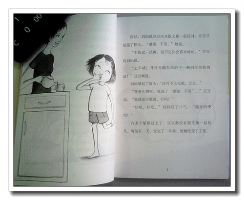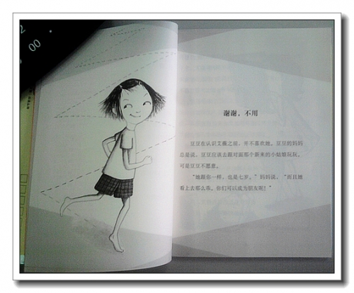刚阅读了第一章,我便不禁失笑,豆豆的妈妈让豆豆去跟邻家的艾薇做朋友,可是豆豆觉得艾薇是个“乖”女孩,根本不想和她一起玩儿。豆豆和艾薇刚开始根本就不对盘,后来也提到,艾薇最讨厌的人也是豆豆,因为艾薇的妈妈总是表扬豆豆乖。还记得网上流传的那个你最“恨”的人吗?是邻家的孩子!因为他们读书棒、运动棒、有礼貌、孝敬父母,所以总被当成我们的榜样。人本来就是有个性的,我们就是我们自己,因为我们与众不同,所以才吸引别人,想一想,你交的朋友是与你相似的,还是与你不同的?艾薇爱读书,豆豆爱捣蛋,两个个性如此迥异的孩子,却因为一个偶然的机会成了莫逆之交。
