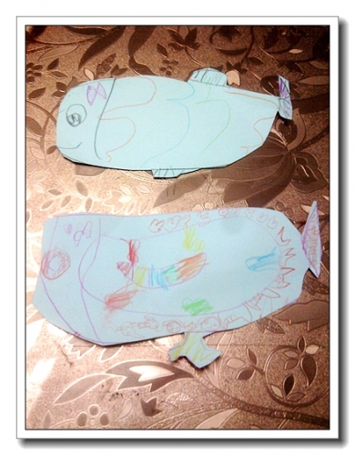 婷画的鱼挺漂亮吧,尤其第一条,鱼的表情超可爱啊。剪得也很不错,贴着边线,细节也基本无损伤。
