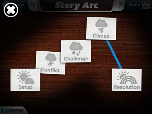 进入应用,点击创作新卡通,默认给出的步骤包括以下几个:Setup、Conflict、Chanllenge、Climax和Resolution,就像写剧本时所描述的步骤一样,从开端到冲突、到挑战,再到高潮,最后解决冲突后的结局。当然,你也可以简化剧情设置,只录制一个场景。