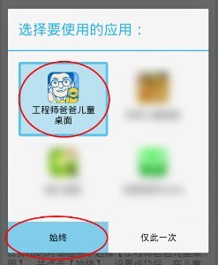 3、在弹出的对话框中选择“工程师爸爸儿童桌面”和“始终”,设置工程师爸爸儿童桌面始终为默认桌面。