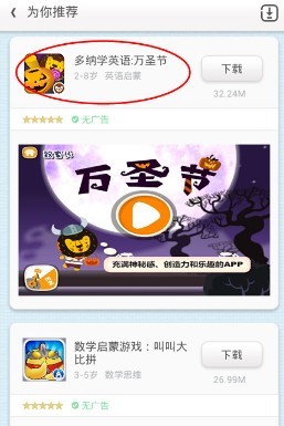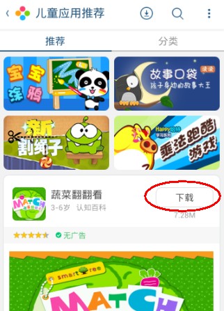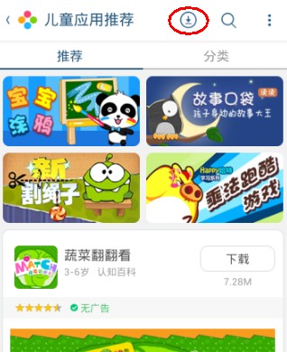 2)方式二:进入儿童应用推荐页面,通过滑屏按照应用分类进行下载。