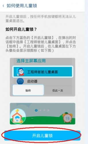 2、在如何开启儿童锁这个界面,点击底部“开启儿童锁”按钮。