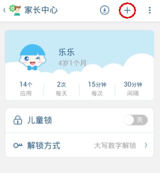 五、如何添加第二个宝贝 1、在家长中心点击右上角的添加按钮