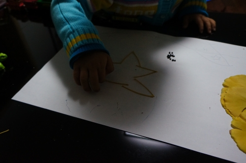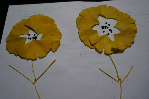 上周末我和宝宝在小区里捡了几片落下的银杏叶