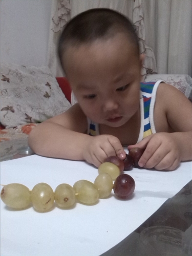 魏宝的老师发了亲子作业《有趣的果蔬造型》,这个可是难不到我和魏宝,因为以前我们在绘本馆做过,再做一次拿自然是得心应手了。 我们是用葡萄做的毛毛虫,红色的葡萄做毛毛虫的身体就配了青葡萄做毛毛虫的头,用青葡萄做的毛毛虫身体的就用红葡萄做的毛毛虫的有,两条毛毛虫一会功夫就被魏宝连成毛毛虫了,做的随不太好但是魏宝自己做的。