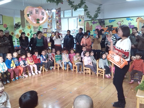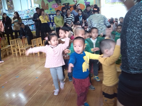 2013年12月魏宝幼儿园的家长开放课上的是好吃的食物,家长到了教室孩子去不在,老师将家长安排好了后,孩子们在欢快的音乐声中像小燕子一样进了教室。