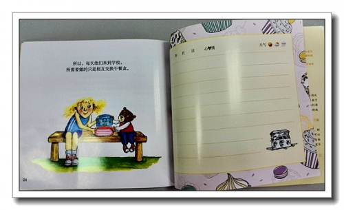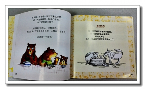 秘密日记,是熊爸爸的秘密吗?熊爸爸每一天的记录看似简单,每一天记录的内容看似关联也不大,一天天阅读下来,才发现原来是熊爸爸发现谜题,然后循序渐进,破解了小熊宝宝一个小秘密的过程。故事中还传递了许多有益的信息:多吃富含维生素的新鲜蔬菜,可以让人长得健康强壮;要认真去观察孩子,了解孩子的喜好;给孩子做饭要多样化,充分调动孩子的胃口;互相分享,可以享受到更多更好的东西;尊重孩子的小秘密等等。从故事中,我还感觉到两个小朋友对爸爸妈妈的爱——虽然他们并不喜欢自己的午餐,但是从来不说,只是假装全部吃掉,其实自己偷偷交换,可是保障了父母们的自豪感。