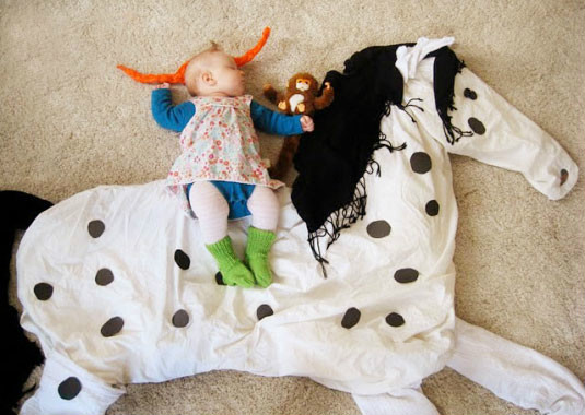 “芬兰的一位妈妈Adele在她的小宝贝女儿Mila睡觉时,用衣服、毛巾啊这些家里的道具给Mila摆出了许多故事里的场景姿势拍了下来。每张照片就花几分钟的时间,很自然的创意和造型,她把这些照片集成了一本相册:“Mila的白日梦”。太可爱了。”