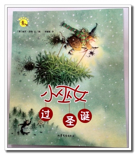 圣诞前夕收到一本关于圣诞的书,真是应景而开心。《小巫女》过圣诞整本书就像封面画得那样,融化在淡淡的绿色里。讲这个故事的时候,才发现其实封面才是故事的开始——小巫女从森林里采集了一棵圣诞树,骑着扫帚(扫帚?感觉扫帚的尾巴跟圣诞树的根一样啊,还带着点泥土,非常怀疑是现扎的)把它带回了家。