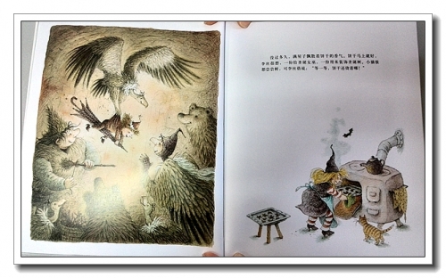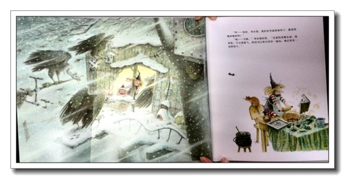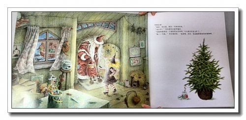 书里有很多翻页,打开可以看到大大的场景,给人不一样的惊喜。书里有很多细节,比如第一页翻页里,桌子上放着小巫女没画完的圣诞树和她的益智拼插玩具(我们家也有这样的玩具);小铃铃坐的婴儿车没有轮子,而是两枝弯把手的扫帚;窗户外停着圣诞女巫的雪橇,与圣诞老人不同的是,它的下端同样是巫师专用的工具——扫帚。翻到最后一页翻页,不一样的场景太多了,可是你知道我最想让孩子观察到的是什么吗?哈哈,就是日历——第一页是24日平安夜,而最后一页,已经是25日了。