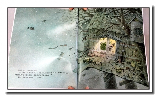 笃笃笃,笃笃笃,敲门声不断,来取暖的人越来越多,屋子里也越来越热闹,过节就是要有这样的气氛,人多才热闹。自己装饰圣诞树才有意思,看小巫女用黄色的纸剪出星星,坐着扫帚挂上一个个铃铛,用饼干来装饰圣诞树,真是个很棒的主意,被小巫女施过魔法的魔幻彩灯圣诞树,闪亮又喷香。当翻开那页大家围着圣诞树品尝饼干的页面,绚亮温馨,让人惊叹而感动。