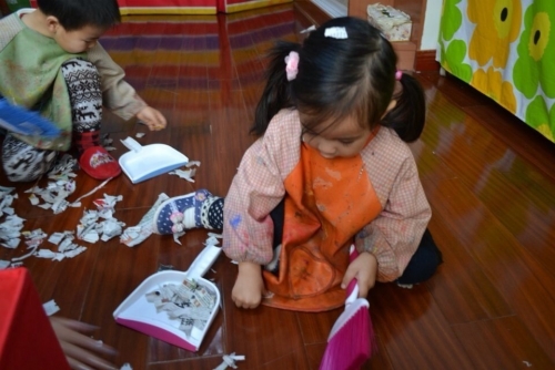 幼儿园的老师带着托班的孩子们玩了一节课,下午放学的时候跟我说孩子们真的很认真,玩的时候认真,收拾环境的时候也认真,一个小纸屑都不放过,听的我心里暖暖的。