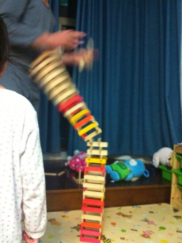好了,接下来就是倒处乱跳的时间了,积木轮到爸爸和姥姥出场,