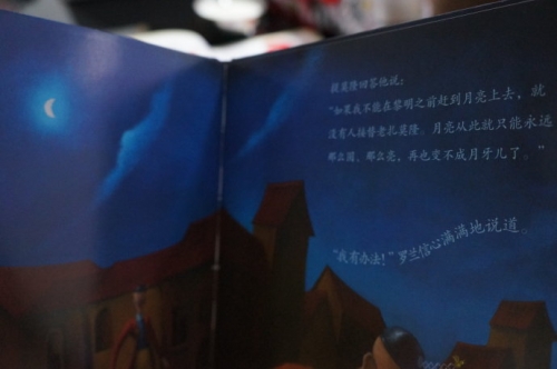 不过这次写信我主要为了说明另一件事情,就是在大概读了十几遍以后,儿子提出了一个问题,从书的第六页开始,内容里说:因为提莫隆丢了药丸,没法到月亮上去遮月亮,也许以后再也不会有月牙儿了。再往后,提莫隆向玩具商达夫内解释的时候也说:如果不能在天亮之前赶到月亮上去,就没有人接替老扎莫隆。月亮从此就只能永远那么远、那么亮,再也变不成月牙儿了……等等类似这样的地方,书中的插图却总是一个明亮的月牙儿,每次讲到这些地方,儿子都会指着月牙儿说:妈妈你看,有月牙儿。的确,根据内容来看,类似这样的地方应该配满月的插图,这样不仅能和内容吻合,也能和书的第二页老扎莫隆坐在月亮上精疲力竭等待新一任人选接替他相吻合。等最后扎莫隆成功登月以后,再出现月牙儿的图,就完美了。不知道原版图书中是否有这样的小失误。很高兴刚刚3岁的儿子能够仔细读图,同时也能认真思考问题。所以作为妈妈,一定要把儿子的反映反馈给贵出版社。请编辑们认真斟酌。