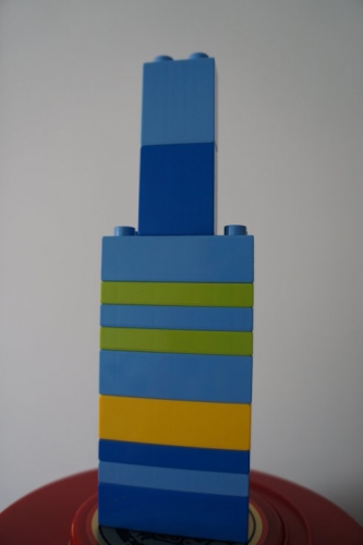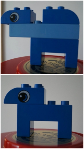 阶段二:初学模仿阶段(2岁至2岁4个月)。记得儿子快两岁时,家里进了一套Lego创意系列豪华桶5507 (含底板),随即又进了一套Lego 德宝L6784,这两套和前一个阶段的乐高相比,里面少了很多成型的积木,所以对于宝的动手能力和想象能力要求更高了。那个时候,老公和和我总是会陪儿子一起拼各种动物,长颈鹿和大象,我记得是最初我们给宝拼的的动物。小朋友记忆力很好,拼一次的动物,小家伙都能瞬间记忆下来并模仿。让我没想到的是,2岁1个月,儿子突然爱上乐高。每天都会主动拿出来拼一拼,比前一阵兴趣显然是浓厚许多,进步也很快,有模有样的东西在他手中逐一呈现。有时候宝爸下班回家会和宝一起疯玩,例如会用尽家里所有的基础模块,拼一个比宝宝还高很多的火箭,每次这种时候,宝宝那种开心劲儿无法形容。还记得去年春节,宝舅舅来家里(想当年宝舅舅也是个拼插积木大王哦)给宝拼了一辆坦克,可能是因为男孩的原因,虽然第一次看舅舅拼坦克,但小家伙心领神会,先是拆掉,然后很快自己又拼了一架新坦克,舅舅赞不绝口。