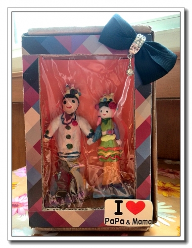 找了个快递盒子,请老爸给割了个口子,衬上袜子包装上的玻璃纸,外面用张广告纸装裱了一下,按照婷的要求贴上了她衣服上掉下来的蝴蝶结。看到袜子上的包装挺应景,一便剪下来贴上。