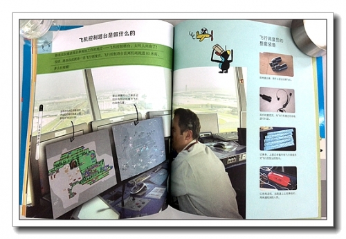 书里还介绍了与飞机有关的各种人员的工作:飞机驾驶员是如何驾驶飞机的、空姐的服务内容、行李运送员、停机坪指挥员、海关职员、飞机控制塔台的调度人员、气象人员、修理人员等等,以前我都没有这么详细的了解过。
