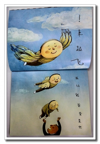 第二页需要竖直看,从小往上看,连文字也是,很少见这样的设计。抛高高,这也是大多数孩子最喜欢的游戏之一。
