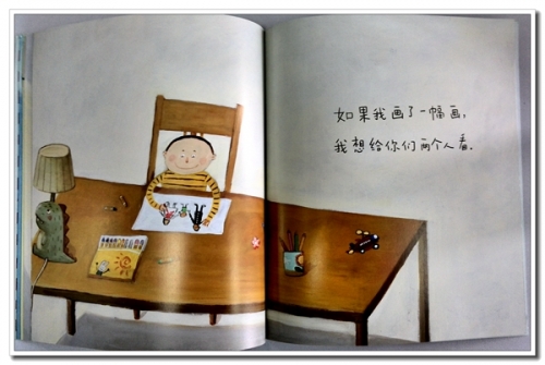 封二是线条的画面,孩子跟父母在一起的点点滴滴,有点儿童风格的简笔画,简约却不简单。换灯泡、捉迷藏、骑大马、讲故事,一个个熟悉的场景,温馨感人。