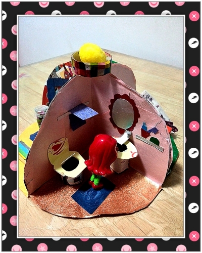 给娃娃做个娃娃屋,不知道是不是每个女孩子的梦想,反正我看到那些精致漂亮的娃娃屋,是喜欢得不得了,羡慕那些心灵手巧的女子们。我是手极笨人极懒的,可是架不住疼闺女(也许是疼小时候的自己,圆自己的梦?),星期天用了将近一天的时间,用手头现有的材料,跟婷一起捣鼓出这么一个东西来,极是粗糙,婷却很是喜欢,晚上睡觉都要放到床头,一醒来就又是要看。婆婆说辛苦半天,她喜欢不了一会儿,却觉得,只要她有一时半会的喜爱,便怎也值得。