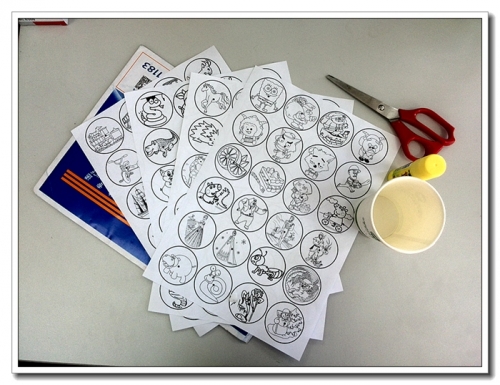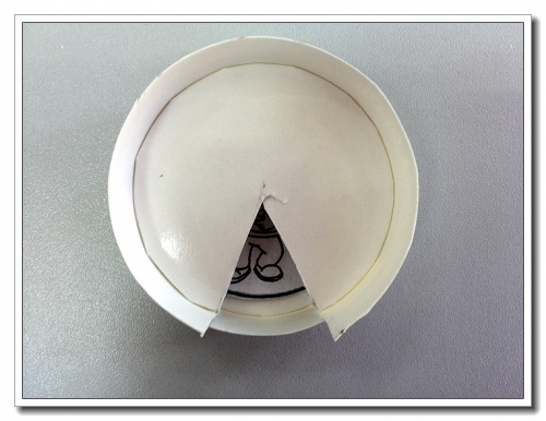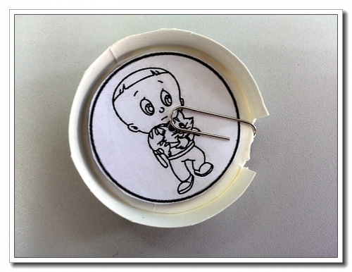 将图片用曲别针别在纸杯上另一个纸杯套上去,猜吧,看看这是什么。